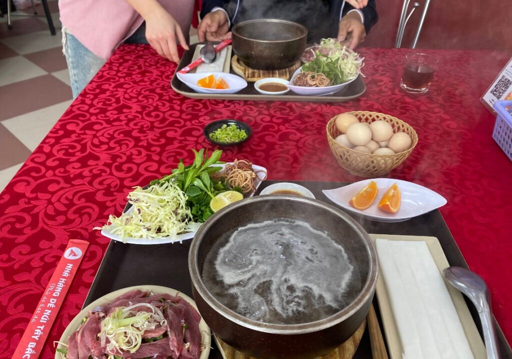 Thịt dê mềm, sạch, topping đầy đặn, rau sống được rửa sạch kỹ lưỡng và giấm tỏi thơm dịu được pha chuẩn chỉnh. Ngoài phở, quán còn phục vụ các set lẩu, tiết canh dê và những món nhắm đặc trưng, thích hợp cả ăn sáng lẫn tụ tập gia đình.