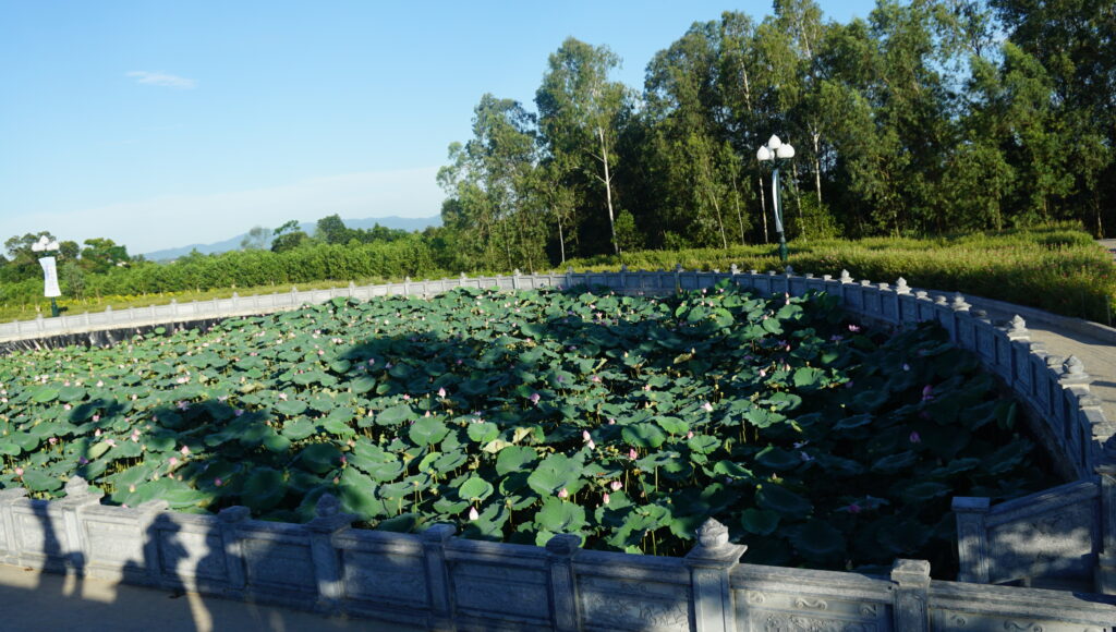 Trong khuôn viên còn có hồ bán nguyệt, giếng và các công trình phụ trợ, tất cả đều được bài trí cân đối, tạo thế “tiền thủy, hậu sơn”. Không gian kiến trúc và cảnh quan hòa quyện tạo nên sự tĩnh lặng, trang nghiêm nhưng không kém phần gần gũi.
