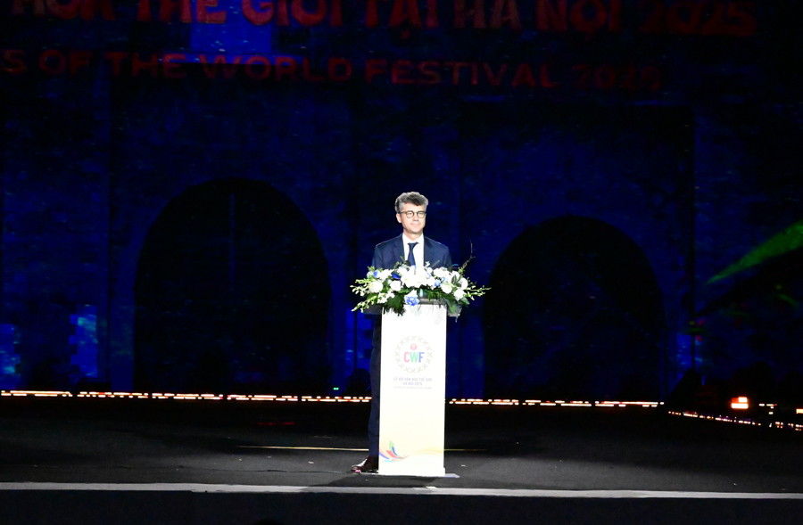 Nhắc lại các hoạt động hợp tác của UNESCO trong Lễ hội Văn hóa Thế giới Hà Nội với thông điệp “sự sáng tạo và nhân văn luôn đồng hành”, ông khẳng định mỗi hoạt động đều thể hiện cam kết chung của UNESCO với Hà Nội và với Việt Nam: Đặt văn hóa vào trung tâm của phát triển bền vững, trao quyền cho cộng đồng, và thúc đẩy sự sáng tạo như động lực cho sự hòa nhập và kiên cường.