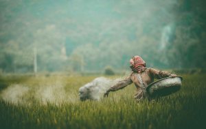 Tháng 7, khi lúa đương thì con gái nhuộm xanh mơn mởn trên những thửa...