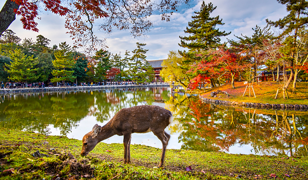 Đền đài Todaiji - Công viên Deer Park – bao quanh khuôn viên của đền Todaiji, nơi đây còn được gọi là Lộc Uyển Quý khách có thể chụp hình hoặc vui đùa cùng những chú hươu nai đã được thuần hóa, đi lại khách tham quan và luôn mong chờ mọi người cho ăn.